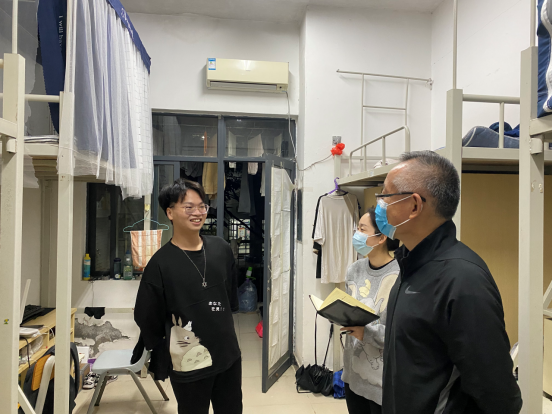 走访过程中,院领导亲切地询问同学们的衣食起居和封校期间遇到的困难,让学生倍感温暖,值班教师详细了解学生们的共性和个性化需求,并现场为同学们提供解决方案。院领导还勉励同学们要加强体育锻炼,劳逸结合,合理利用时间,不负韶华。
