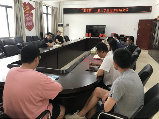 6月28上午9:10分在体育学院游泳池附属用楼309会议室召开2022年广东省第十一届大学生运动会总结大会,会议由体育学院副院长宋浩主持。
