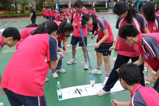在朋辈辅导学生教练员的带领下,同学们完成了预示着人生奋斗历程的“鸡蛋进化论”项目、需要团队合作和突破心理定势的“雷阵穿越”项目和“神笔马良”项目,在欢笑中释放备考压力、增进人际交往、增强心理韧性,实现心灵成长。