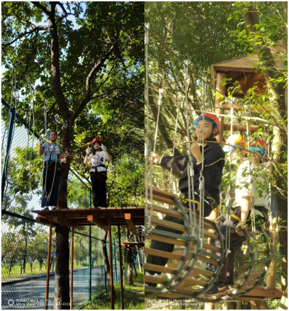“丛林穿越”又名“丛林飞跃”或“丛林飞越”,是一种安全时尚、健康、低碳、刺激的全新户外体验活动。这是在倡导一种全新的体验森林的方式,要求同学们在原生态的环境下,最大限度地接近自然。 参与探险的同学们在树林中按照各种不同的环节在丛林中穿行,攀爬,跨越,滑索等,克服种种障碍和困境,最终达到目的地,从而在玩耍中得到锻炼,获得挑战自我的成就感。