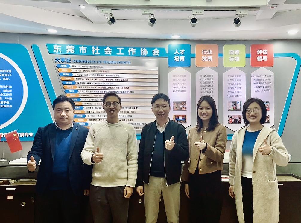在东莞市社会工作协会工作人员的带领下,教师团队参观了协会办公场所及展示中心,详细了解了协会在行业标准制定、人才培训、政策倡导及项目实施方面的实践成果。协会近年来在推动社会工作发展、服务特殊人群及促进社区治理等方面取得了显著成效,为此次校企合作提供了丰富的实践经验。
