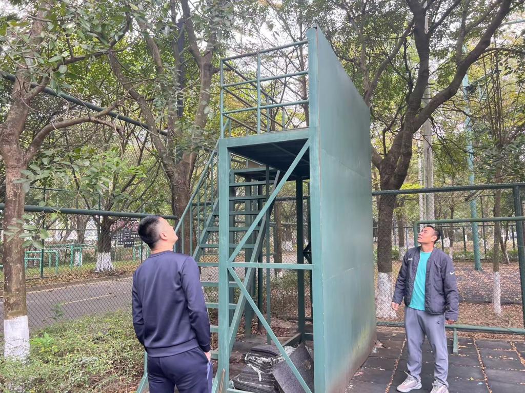 检查组对体育馆、田径运动场、户外运动设施(拓展培训基地、穿越丛林基地、攀岩墙)、教学实训室等场所进行了全面细致的排查,重点检查了消防设施、场地器材维护、用电安全及应急通道畅通情况,确保各项安全措施落实到位。宋浩副院长强调,要牢固树立“安全第一”的理念,对发现的问题立行立改,杜绝安全隐患。