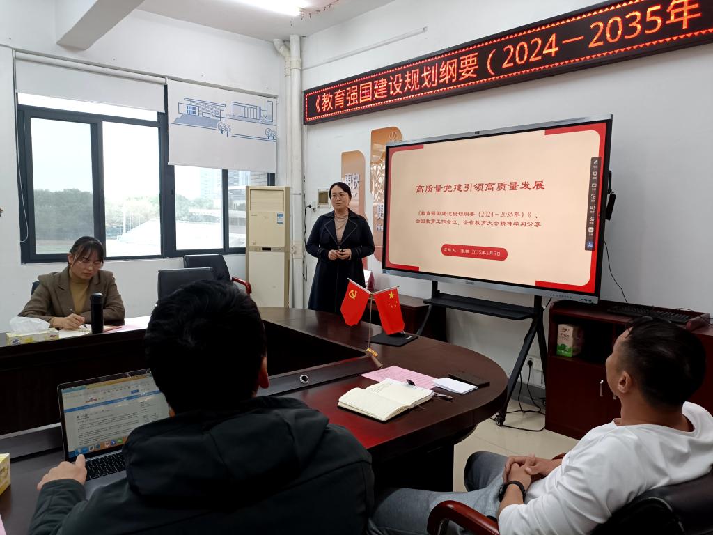 为深入贯彻落实《教育强国建设规划纲要(2024-2035年)》、2025年全国教育工作会议精神及全省教育大会精神,体育学院于3月5日组织召开专题学习会。体育学院领导班子、全体教职工参加学习,会议由学院党总支书记、院长杨乃彤主持。