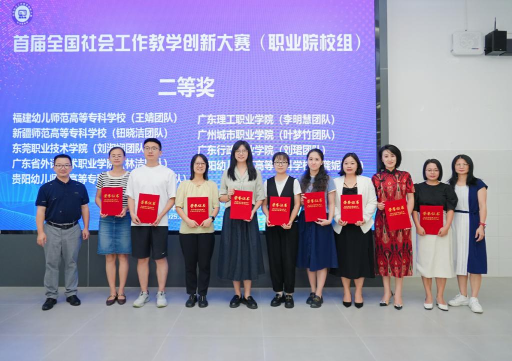 在2025年6月26日-28日举行的首届全国社会工作教学创新大赛上,东莞职业技术学院社区管理与服务专业教师刘淑娴、杜鹏举、袁美芝、洪明心老师凭借卓越的教学创新设计与扎实的专业素养,从全国众多参赛队伍中脱颖而出,荣获大赛二等奖,东莞职业技术学院获得“突出贡献纪念单位”。这一荣誉不仅是对我校教师教学能力的肯定,更是对我校社区管理与服务专业人才培养工作的高度认可。