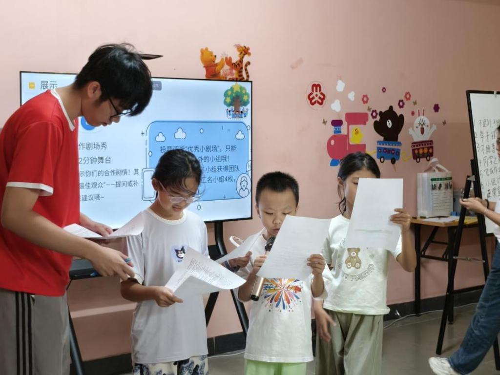 情绪管理课堂上,大学生志愿者们带来了一个个生动的戏剧故事。孩子们跟着故事里的角色,学习识别不同的情绪,从开心、愤怒到悲伤、害怕。在戏剧创作环节,孩子们分组合作,自编自演小短剧。过程中,他们不仅要倾听同伴的想法,还要勇敢表达自己的需求,在一次次磨合中提升了心理韧性。