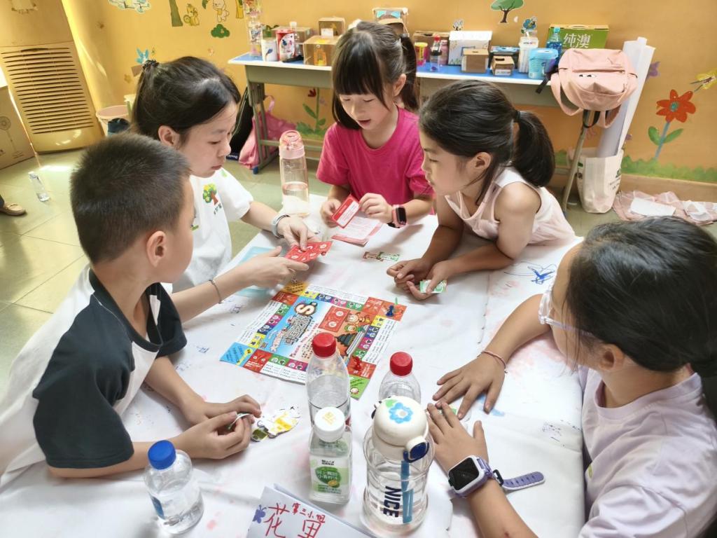 课业辅导时间,孩子们围坐在一起,认真完成暑假作业。大学生志愿者们在一旁耐心指导,同时鼓励孩子们相互辅导。孩子们在帮助同伴的过程中,不仅巩固了知识,还培养了友善互助的意识。财商课堂上,他们拿着“虚拟货币”,在竞拍物品时学会了权衡取舍,在经营“小商店”时明白了赚钱的不易。