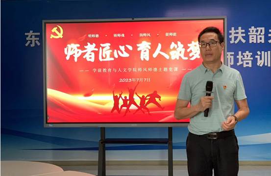 7月7日,学前教育与人文学院党总支组织开展“师者匠心·育人筑梦”主题党日活动,进一步强化师德师风建设,铸牢教职工为党育人、为国育才初心使命。会议由院党总支书记刘忠洋主持,全院教职工参加会议。