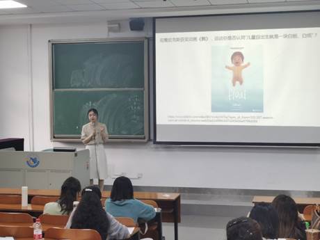 黄佩珊老师主讲的《树立科学的儿童观》一课从问题的根源“为什么要关注成人(教师、家长)的儿童观?”入手,借助案例引导学生理解“什么是儿童观?”,皮尔斯获奖动画《飘》的选择,既能紧扣教学内容,又能给学生在听觉和视觉上带来美的享受。随后抛出观点供学生自主讨论判断何为科学的儿童观。教学过程中,佩珊老师教态亲切自然,教学内容有广度也有深度,善于激发学生自主思考的能力,运用信息化的教学手段,让课堂教学更具直观性。
