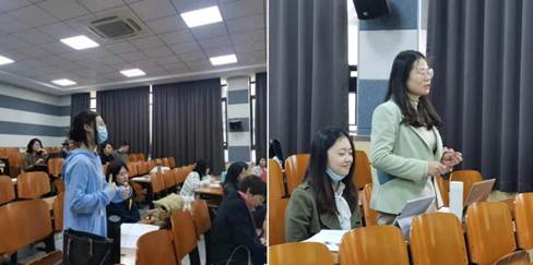 课后,在场的老师们就教学思路的设计、课程思政的融入、教态的呈现等方面开展了热烈的讨论,同时也结合自己的教学实践分享了各自的收获。此次的公开课为青年教师提供了一个跨学科间互相交流学习借鉴的平台,有助于提升青年教师的教学能力、教学水平,更好地落实立德树人根本任务。