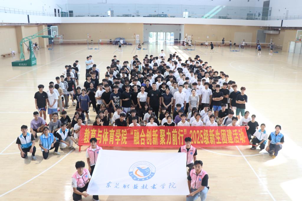 10月15日下午,教育与体育学院在体育馆成功举办“融合创新,聚力前行”2025级新生团建活动。活动旨在加强各专业、各班级之间的融合,构建专业建设与学生工作协同育人的新格局,助力新生快速适应集体生活,同时深化专业认知实践。由预备党员、入党积极分子和团学干部组成的学生先锋团队全程策划组织,充分展现了学院在党团共建与党建引领专业育人方面的扎实成效。