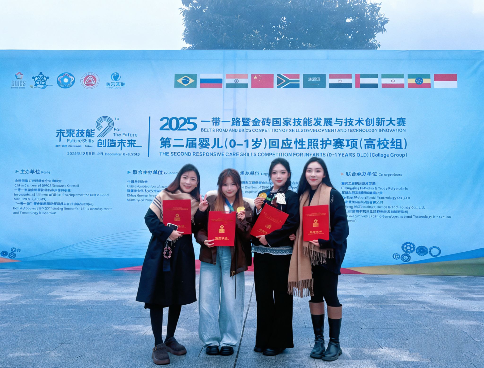 近日,2025一带一路暨金砖国家技能发展与技术创新大赛之第二届婴儿(0-1岁)回应性照护赛项(高校组)全国总决赛在重庆涪陵圆满落幕。经过为期四天(12月5日至8日)的激烈角逐,我校选派的徐晶、郭晓霞同学,凭借扎实的理论功底、精湛的实操技能和卓越的综合素养,荣获本赛项最高荣誉——全国总决赛一等奖,充分展现了我校学前教育专业优秀的教学质量。