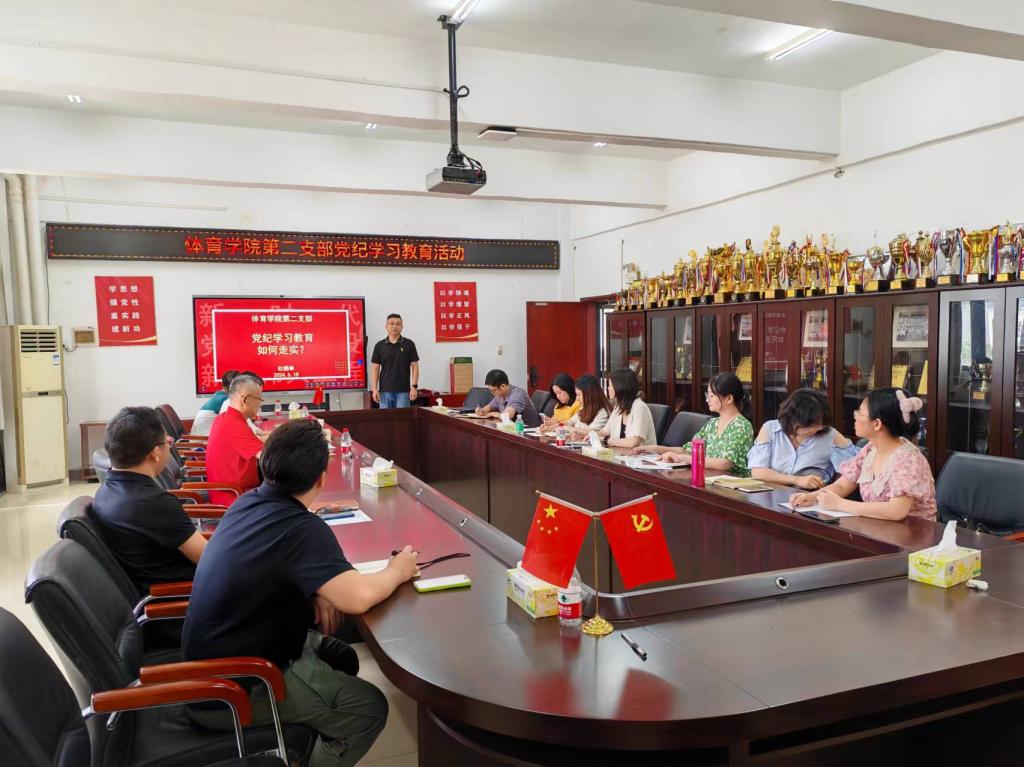 为认真贯彻落实党的二十大精神和习近平总书记关于党纪学习教育的重要讲话和重要指示精神,进一步增强全体党员的纪律意识,提高党性修养,营造学纪、知纪、明纪、守纪的浓厚氛围,不断推动党纪学习教育走深走实。2024年6月18日,体育学院第二党支部开展了“党纪学习教育”活动。支部书记杜鹏举同志以《党纪学习教育如何走实》为题,为全体党员讲党课。