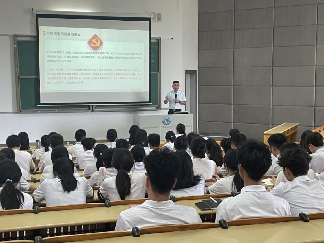 党课结合高校实际,分析了学习八项规定精神的必要性:一是高校作为立德树人的主阵地,教师言行直接影响学生价值观塑造;二是科研经费使用、学术不端等问题易发,需筑牢纪律防线;三是作风建设关乎校园政治生态,师生党员应带头营造风清气正的环境。