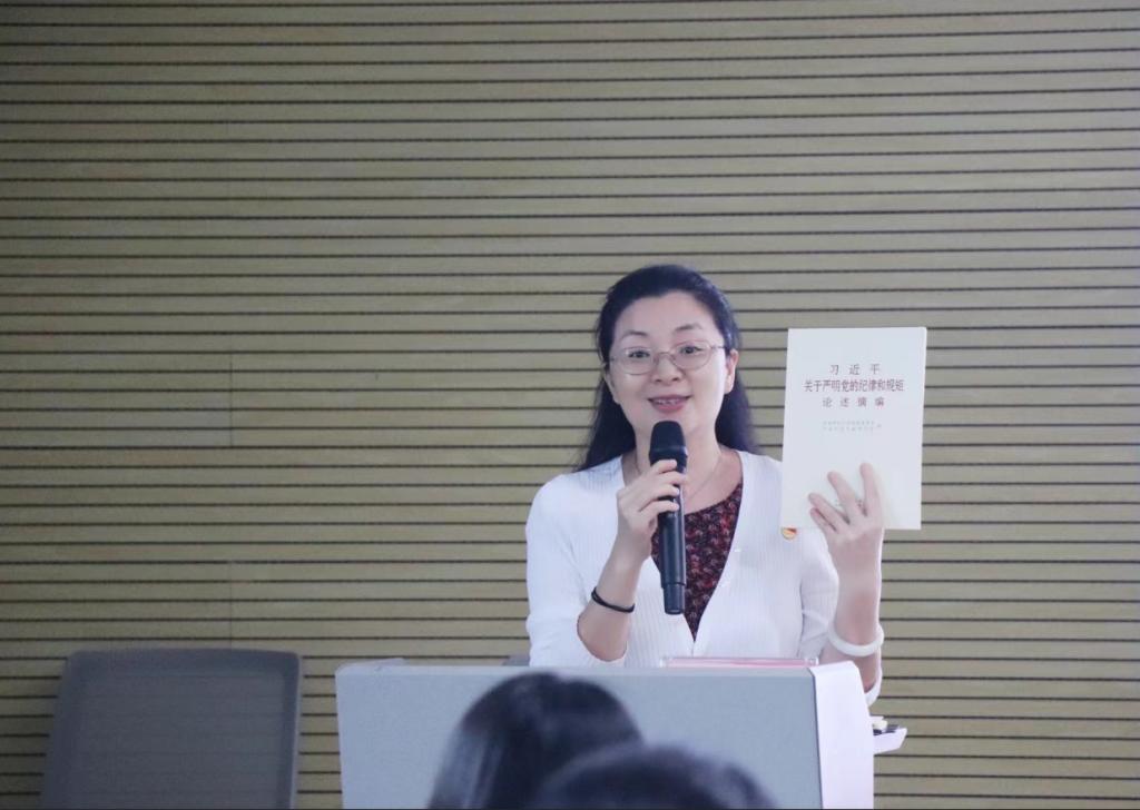 在此次警示教育会中,蔡莉带领大家学习《习近平关于严明党的纪律和规矩论述摘编》第一章,强调没有规矩不成方圆,给党员们讲道理、敲警钟、划红线,引导广大党员、干部自觉学习党章、遵守党章、贯彻党章、维护党章,自觉加强党性修养,切实做到为党分忧、为国尽责、为民奉献。特别是每一位党员老师和青马班学员都应结合所学理论知识和工作、学习情况,规范自身言行,加强党性修养,以一名优秀共产党员的标准严格要求自己。