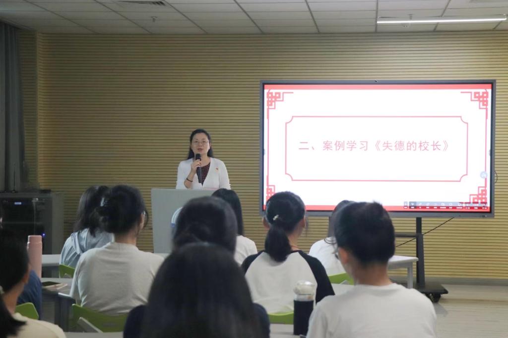 7月4日下午,学前教育与人文学院召开警示教育会,学院全体党员教师和“青马工程”班学生参加了此次会议,会议由学前教育与人文学院党总支纪检委员蔡莉主持。