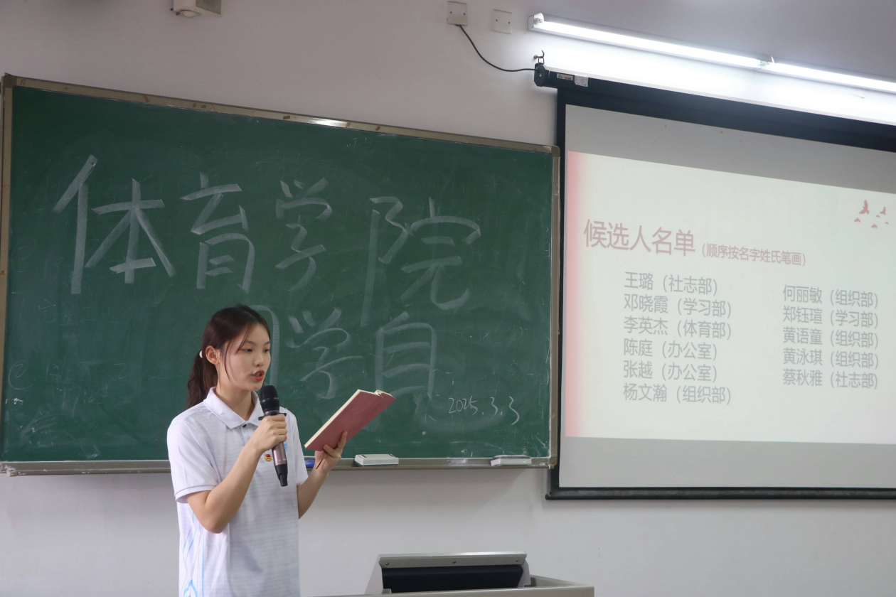 为加强党员队伍建设,培养习近平新时代中国特色社会主义思想接班人,激发团员政治热情,2025年3月3日至4日,体育学院学生组织及青马班在崇德楼303课室召开推优入党大会。院团委书记叶晓斌老师、学生组织全体成员及青马班学员共同参与,会议旨在为党组织输送新鲜血液,增强团组织的凝聚力和战斗力。