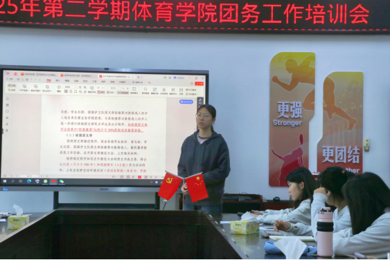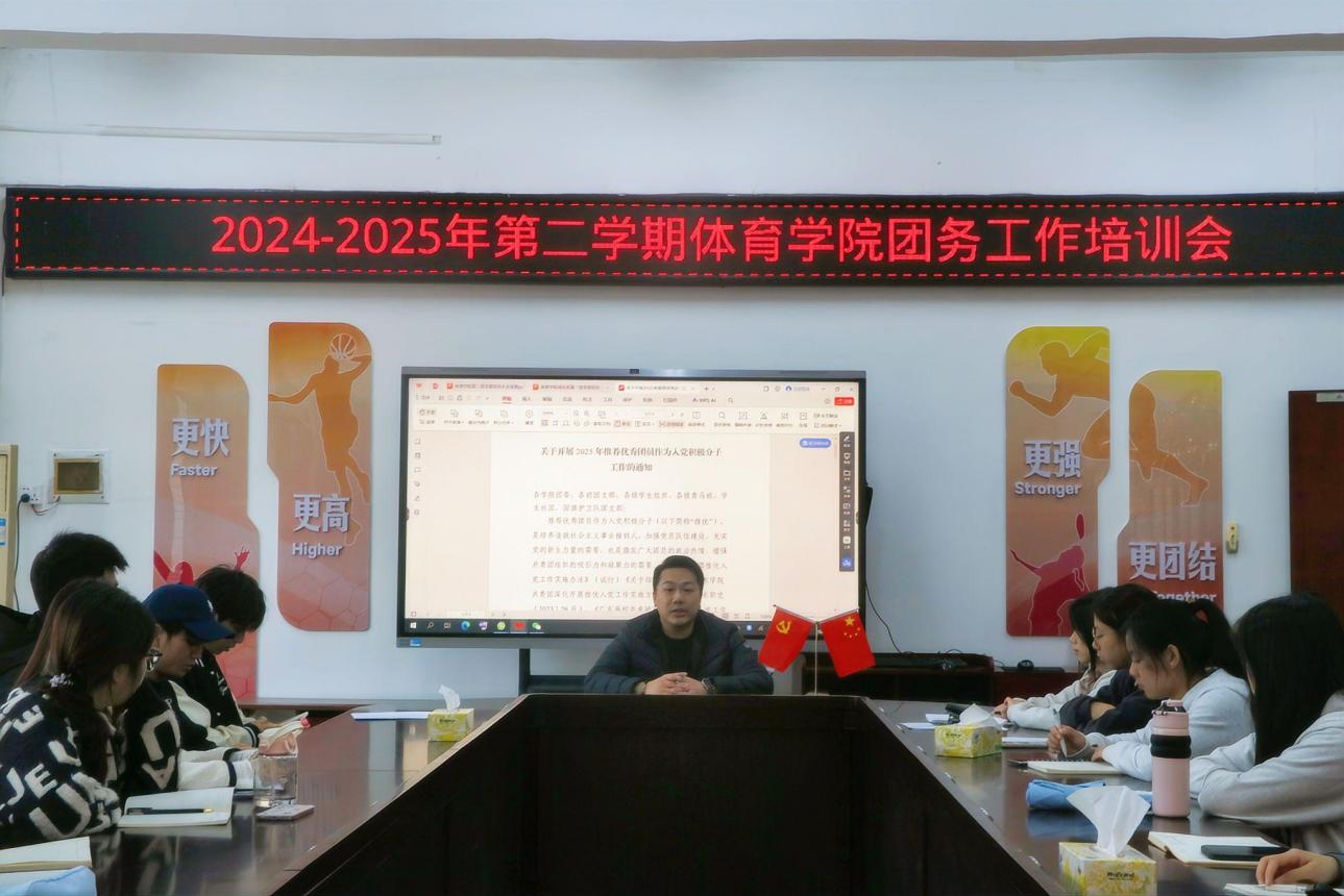 为增强共青团组织吸引力和凝聚力,规范基层团组织“推优入党”工作机制,2025年3月5日中午,体育学院团委在体育学院309会议室组织召开了新学期团务工作培训会暨推优入党专题工作会。院团委书记叶晓斌老师、院团委组织部学生骨干及全体班级团支书参加会议。