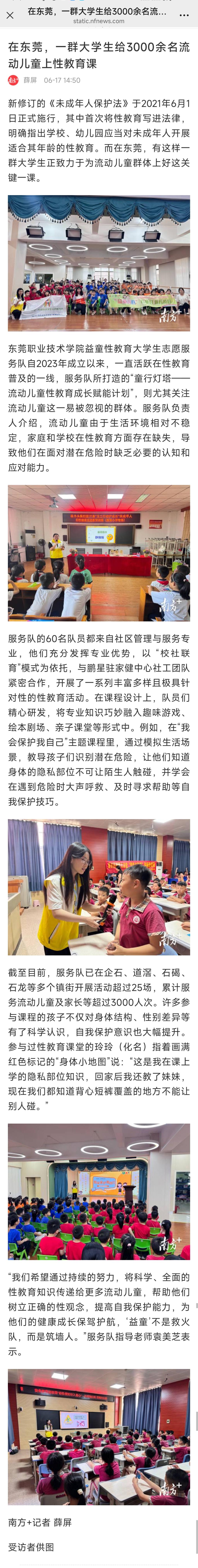上一条:【东莞+】东职院大学生志愿者为流动儿童撑起“保护伞”:25场公益课惠及3000人次