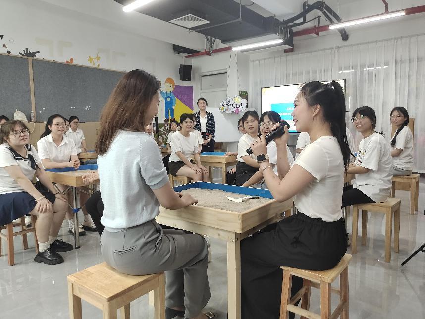 本次教研活动是以我校学前教育与人文学院教师开展公开课的形式展开,由学前教育教研室罗梦君、黄佩珊两位教师分别组织了实践教学活动《进入沙盘游戏指导语的三层次》和《如何在师幼互动中促进幼儿认知发展——以高水平提问为例》。双方学院领导、专任教师全程参与了听课、评课,并在课后积极交流了双方人才培养和课程模式等问题。
