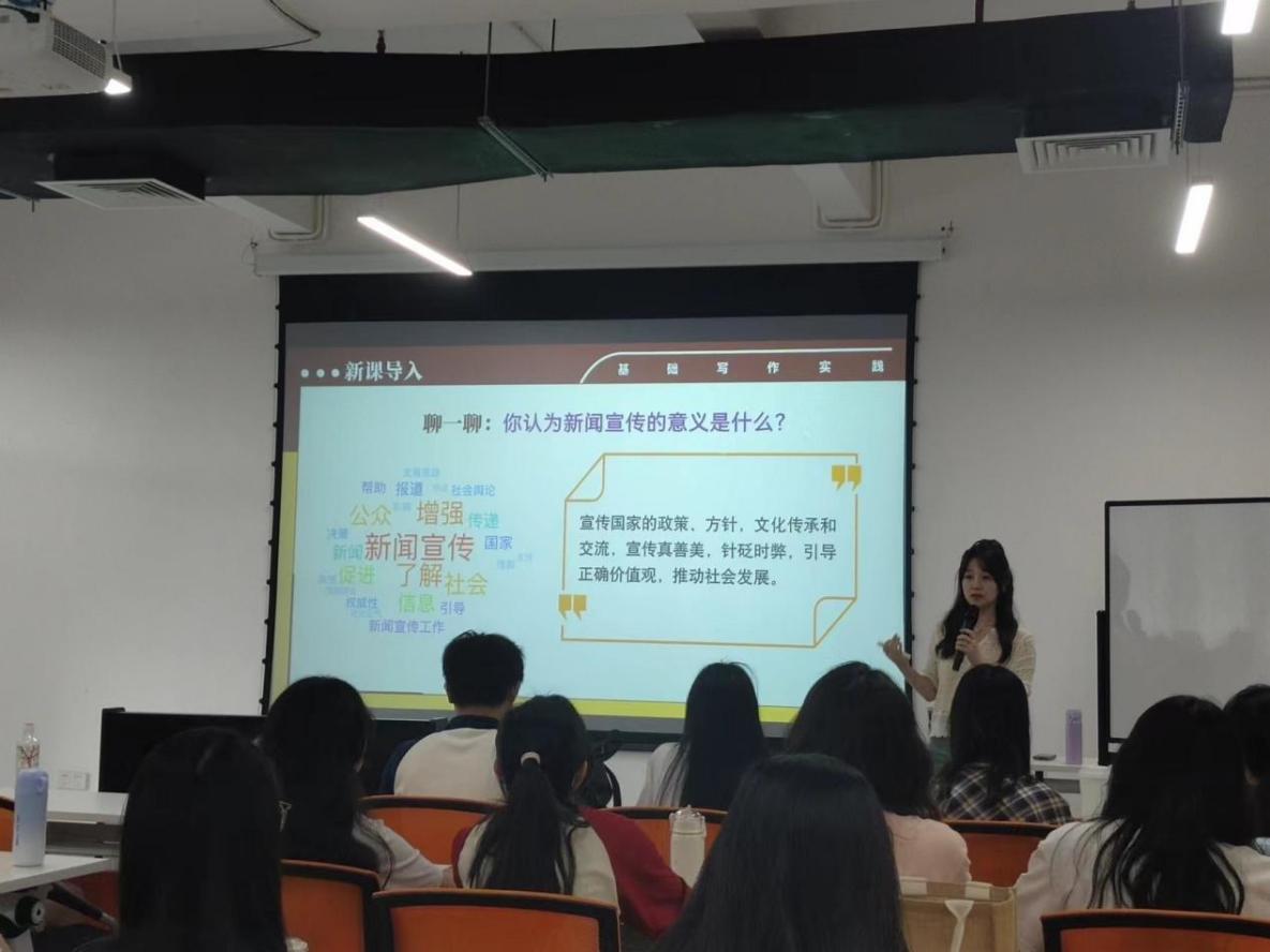 为了让同学们更好地掌握复合新闻标题的撰写方法,马东宁老师面向2023级现代文秘专业学生专题讲授《初探新闻写作——复合式新闻标题》。马老师从“新闻宣传的意义”“新媒体时代学习新闻写作的必要性”等视角切入到本次课程,启发学生思考新闻写作的重点和要点。马老师表示,好的新闻标题能够让读者眼前一亮,她着重强调了文秘工作中发现捕捉新闻线索的敏锐性和坚持马克思主义新闻观的重要性。通过对课程案例标题的分析,马老师与同学们共同总结提炼新闻标题撰写的四种技巧,同学们较好地掌握复合型标题中引题、主标题、副标题的作用。