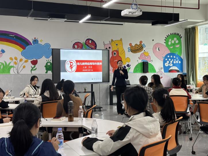 在《幼儿教师应用写作素养》的专题培训中,罗芳副院长凭借自身写作经验,运用案例分析、实战演练等多元形式,深入剖析公文文种与写作格式,详细阐释基础知识,解析关键技巧与要领,为参与者呈上一堂“干货”十足的公文写作课。