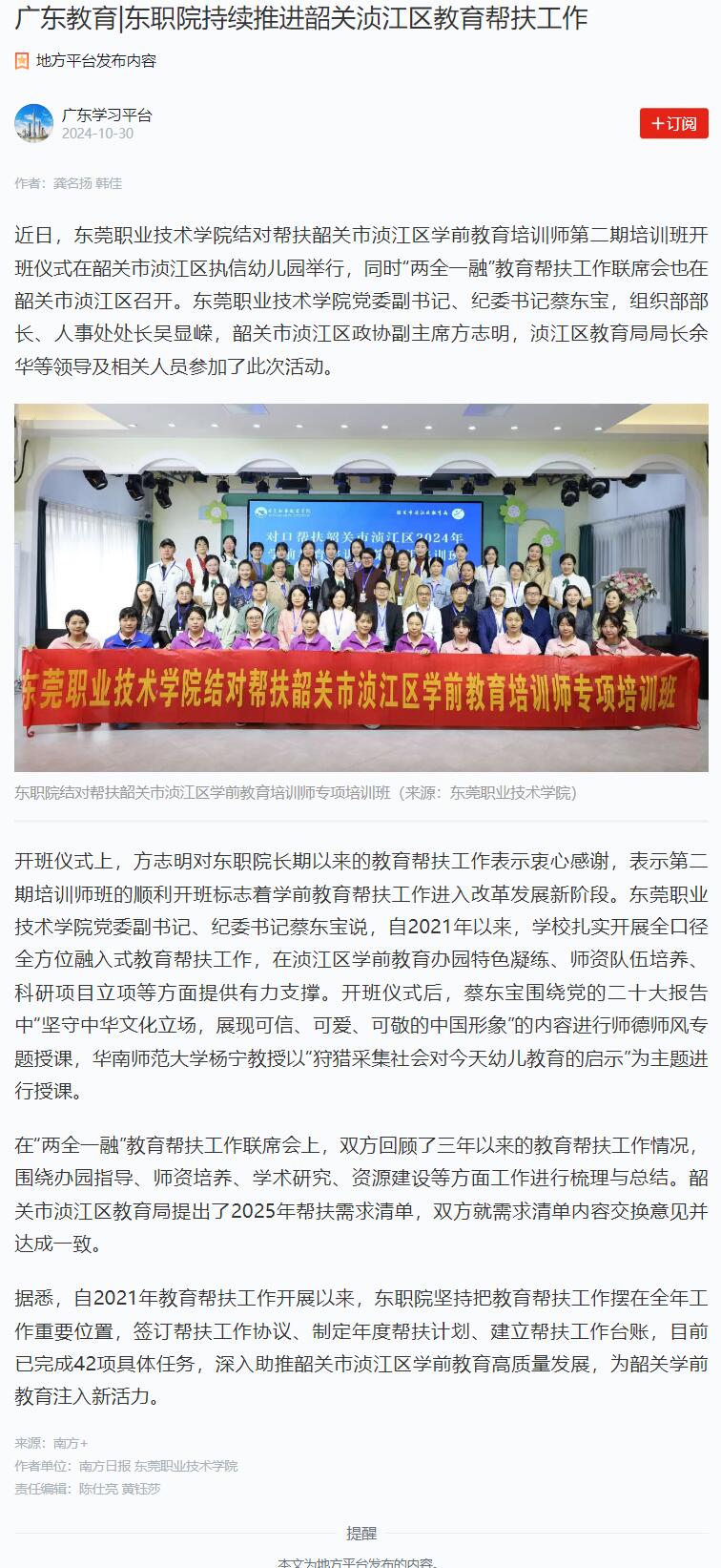 下一条:东莞职业技术学院“两全一融”教育帮扶联席会议在韶关浈江区召开