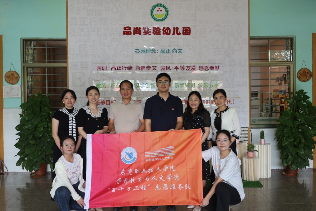为推动“百千万工程”走深走实,10月18日,学前教育与人文学院党总支副书记朱跃东带队赴东莞市茶山品尚实验幼儿园开展服务活动,东莞品尚教育集团四家幼儿园共60余名师生参加活动。