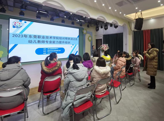 为推进实施全口径全方位融入式结对支持粤北地区基础工作,促进韶关市浈江区幼儿园教师专业化发展,12月25日,学前教育与人文学院组织学前教育专业教师龚梦婷与幼儿园骨干教师梁文欣赴韶关送教上门,54名韶关市浈江区幼儿园骨干教师参加活动。