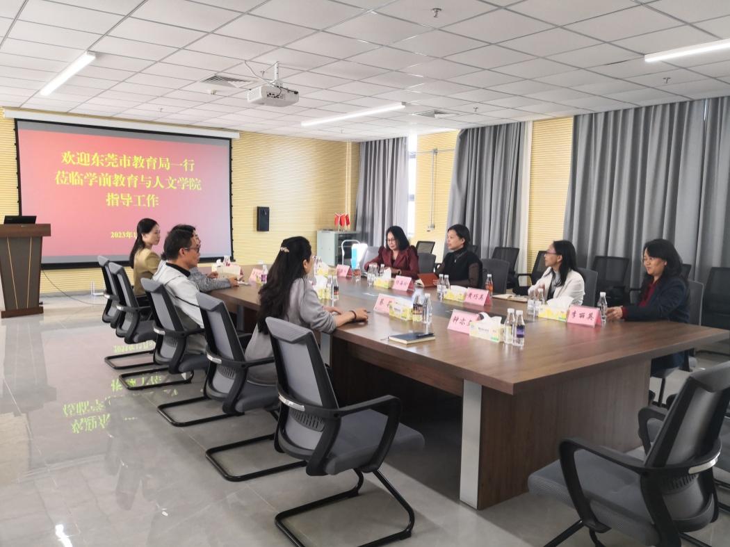 12月8日上午,东莞市教育局四级调研员杨海珍、学前教育科科长黄巧英、东莞市学前教育教研室李丽英副主任一行4人,前来学前教育与人文学院洽谈工作,学前教育与人文学院相关领导参加了本次洽谈会。