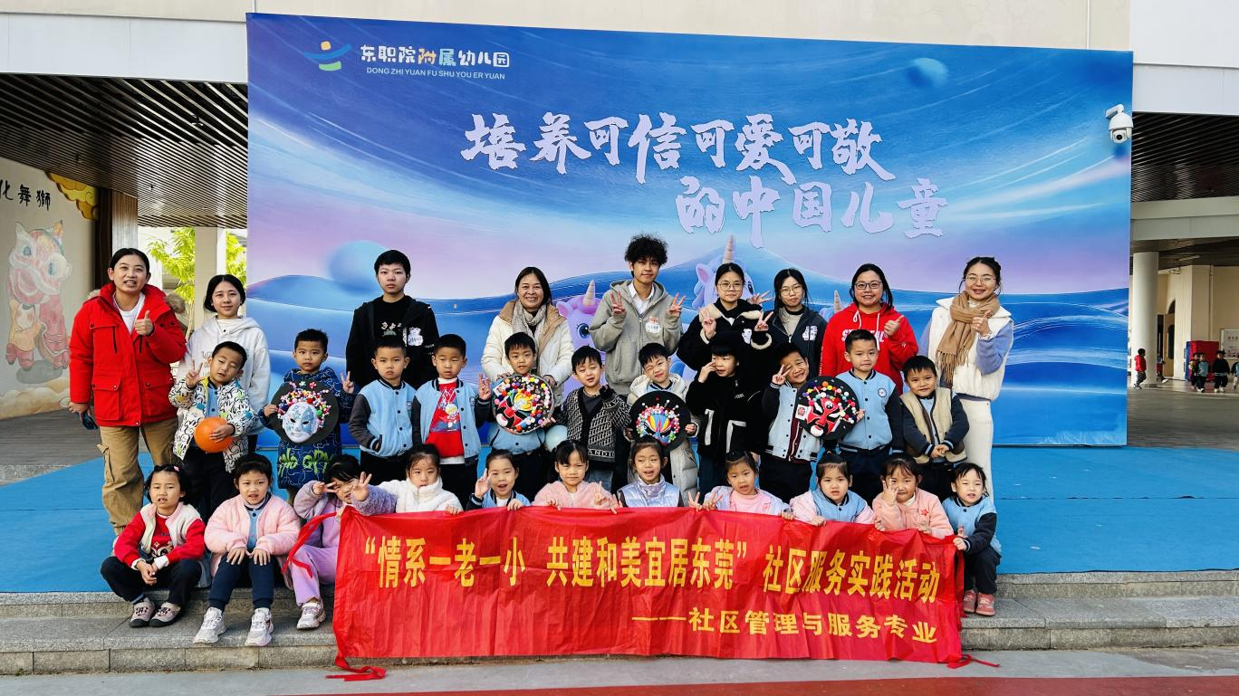 近日,为落实党建引领下的民生服务保障,助力少年儿童全面发展,东莞职业技术学院教育与体育学院社区管理与服务专业党小组以《社区服务》实训课程为重要载体,紧扣“生命教育”与“非遗文化”两大核心主题,走进东职附属幼儿园大班,圆满开展8场幼儿专项服务活动,让孩子们在沉浸式体验中感受文化魅力、体悟生命意义。