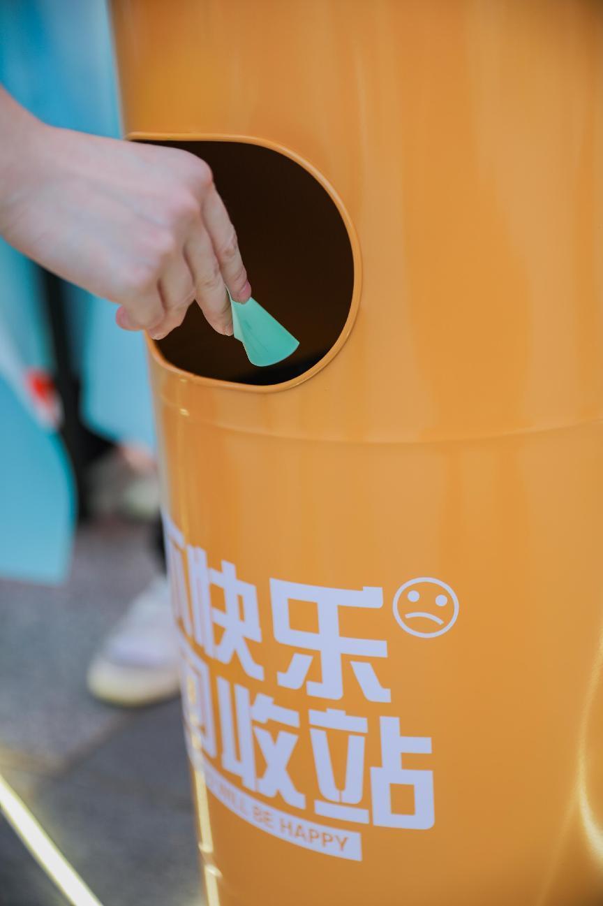 (同学们将写着烦恼的纸条扔进烦恼回收桶)