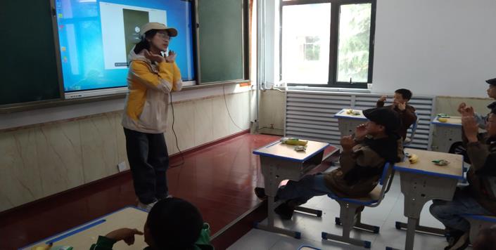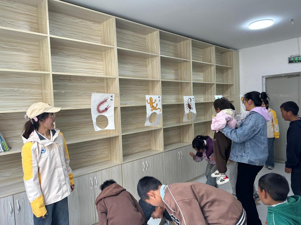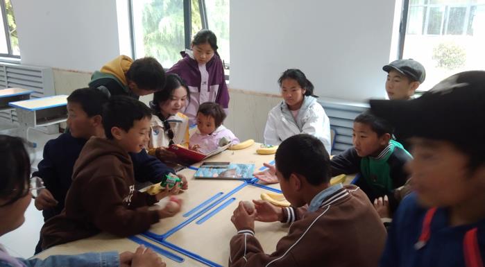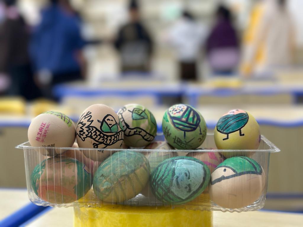 支教老师梁碧敏与林敏瀚与孩子们手绘金蛋