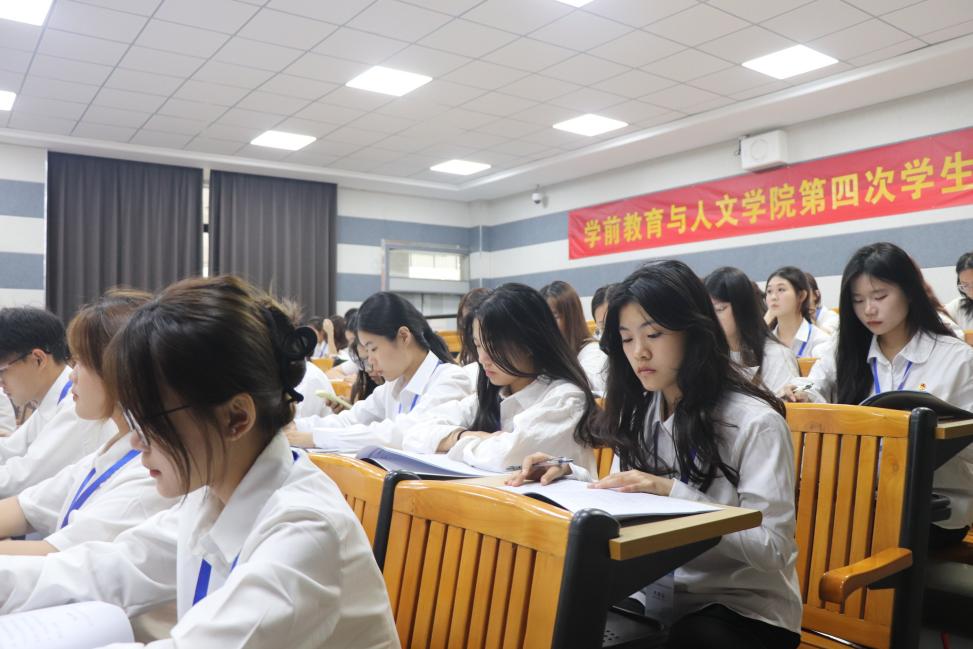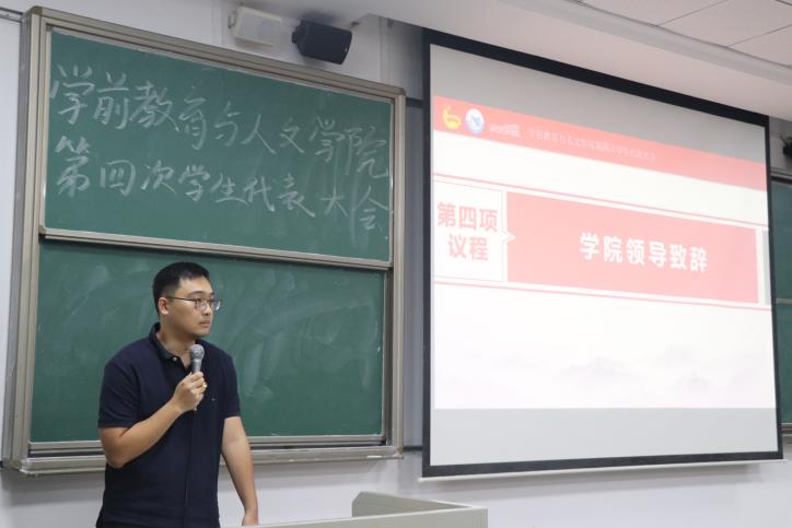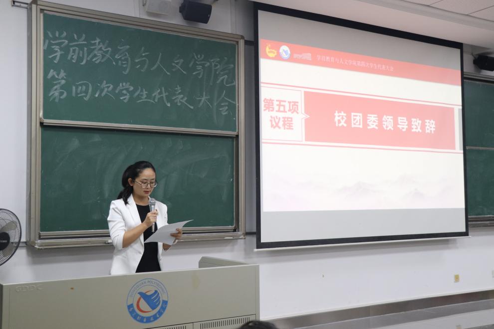 10月23日下午,学前教育与人文学院第四次学生代表大会隆重召开,校团委书记范军、学前教育与人文学院党总支副书记朱跃东、院团委书记程威、校学生会主席团成员祁俊乐受邀与学生代表们共同参会。
