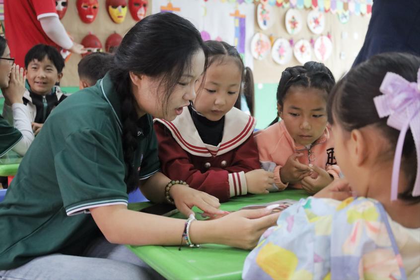 在百巴镇中心幼儿园,志愿者们通过讲故事、唱儿歌、互动游戏等寓教于乐的方式,激发孩子们学习普通话的兴趣。孩子们在轻松愉快的氛围中学习普通话的基本发音和日常用语,志愿者们耐心地纠正发音,鼓励孩子们大胆开口说话,并且让孩子们担任“小小推普员”,通过他们的力量积极向家人推广普通话,用实际行动为语言规范和民族团结贡献力量。